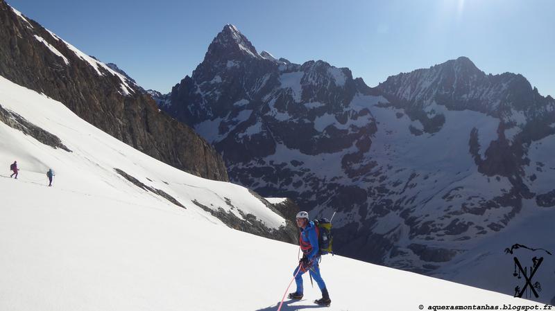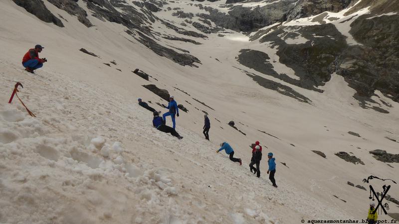 On profitera de la longue montée au refuge de la Pilatte pour faire quelques exercices d’arrêt de glissades, de progression en crampons, de progression encordée… Les bases techniques qu’on mettra en pratique le lendemain!